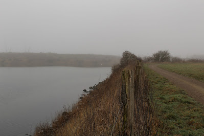 Jeg har fået at vide at der skulle være tag over den store bygning midt i kalkbruddet. Det kan nogen så undersøge hvorfor det er blevet fjernet. Måske er det til reparation? I givet fald lå der ikke nogen synlige mærker efter det. Selve bruddet er i dette tidlige forår ikke så spændende, til gengæld er der heller ikke så støvet som jeg havde troet. Kalket er tilsyneladende banket så asfalthård at der ikke er så meget støv. Sådan følte vandrestavene det i hvert fald. Den lokale vandrefugl anbefalede ikke kaffen i besøgscentret. Så jeg sprang den over, velvidende at der i Rødvig laves hæderlig kaffe på "Central" (det viste sig også at holde stik).